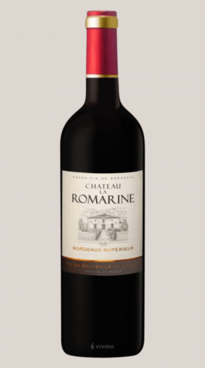 Château la Romarine, an exquisite Bordeaux Supérieur that reflects the rich heritage of this prestigious appellation. With its deep ruby color and alluring aromas of black cherry, ripe plum, and delicate hints of cedar and spice.