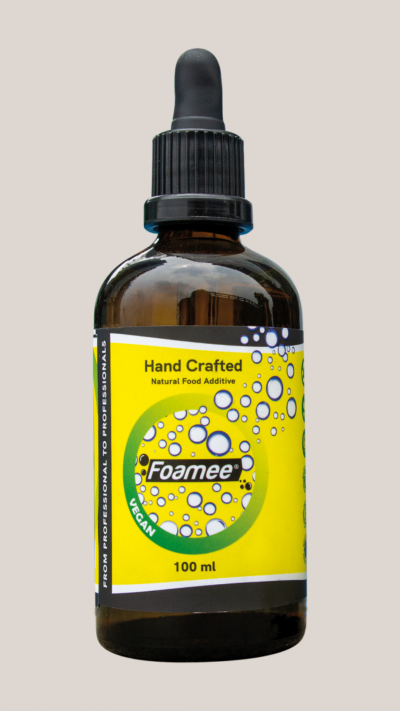 FoameeĀ® reaches 3 main targets Hygiene safety, work efficiency, and cost-effectiveness. a vegan foaming agent that is used in cocktails and beverages to create rich creamy foam heads as a garnish solution or in other drinks as an alternative to egg white