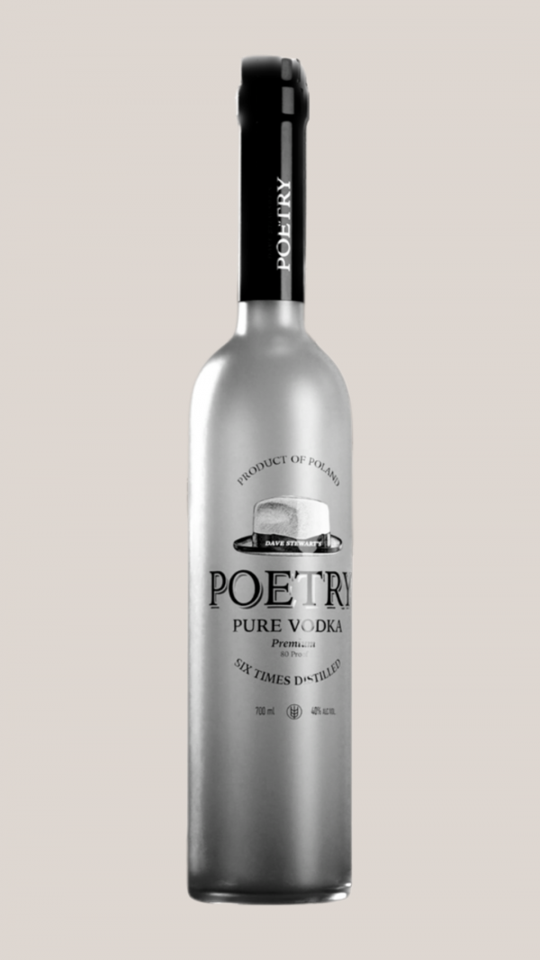Poetry Vodka is the rebellious brand by co-founders, Dave Stewart; music legend and one half of the iconic Eurythmics, and Johan Holgersson; investment wizard and entrepreneur. Poetry is a product of the friends' shared longstanding love for the vodka martini. Poetry is produced in Kalisz, Poland, where grain vodkas have been of cultural importance since as early as the 17th century, this premium wheat-based vodka is crafted by a family-owned grower-distiller.
