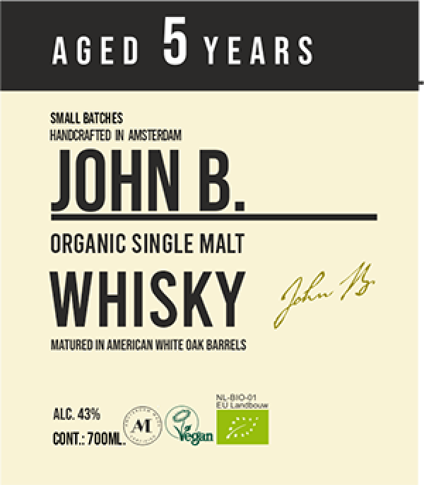 John.B organic certified, single malt whiskey 10 is distilled from organic certified barley malt grown in the province Zeeland.