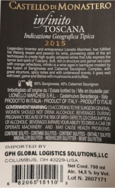 "Castello Di Monastero" Infinito 2015 Toscana IGT