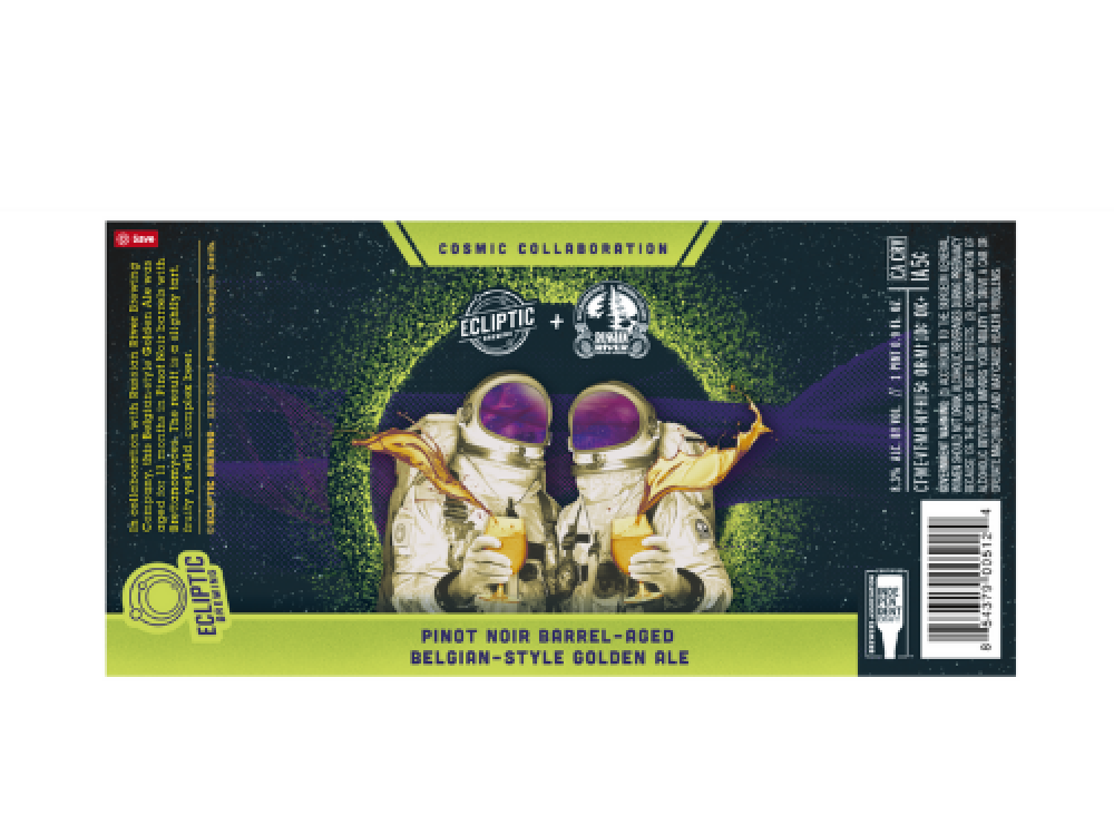 Ecliptic Brewing will release their next Cosmic Collaboration just in time for their 7th anniversary. Ecliptic + Russian River Pinot Noir Barrel-Aged Belgian-Style Golden Ale is the wild yeast brettanomyces dosed and oak-aged version of a 5th anniversary collab first released one year ago. Due to release October 22nd in 500ml bottles and draft, you can join Ecliptic owner/brewer John Harris and Russian River Brewing owner/brewer Vinnie Cilurzo for a virtual release party that evening at 5:30pm.