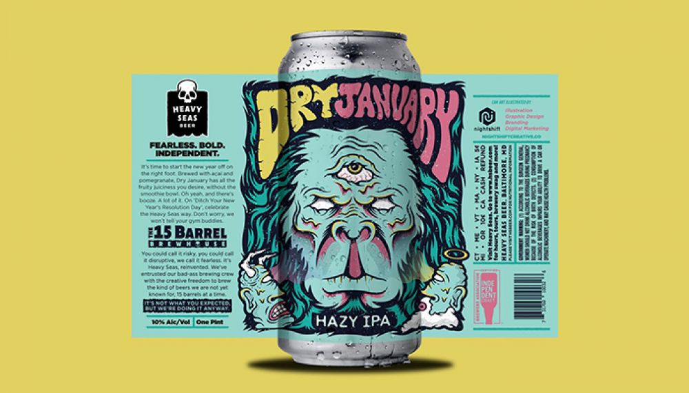 The Dry January label artwork was designed by local Baltimore artist, Chris Gipple, of Nightshift Creative, who also designed Heavy Seas’ 24 Anniversary beer label this past December. All the taproom exclusive beer labels will be designed by Chris in 2020.