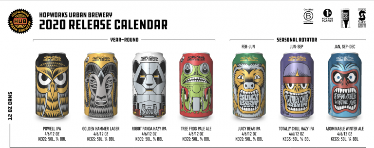 Hopworks Urban Brewery (HUB) has announced its 2020 lineup of beers, featuring a complete brand refresh for Hopworks in design.