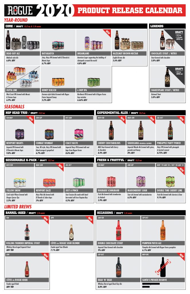 Rogue Ales & Spirits are excited to announce its 2020 Product Release Calendar.