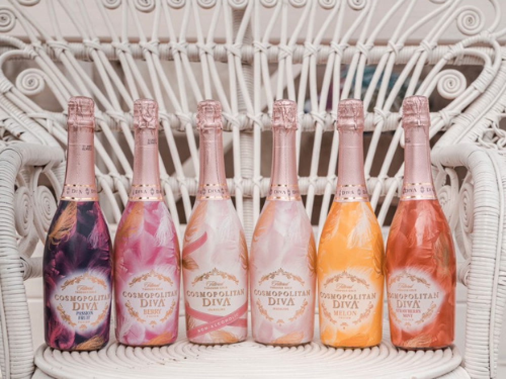 Cosmopolitan Diva is a gold-filtered sparkling wine inspired by fusion drinks that blend the boundaries between traditional sparkling drinks. Founded by Amber Beverage Group in 2014, since its inception a range of six flavours has been developed, including a non-alcoholic version.